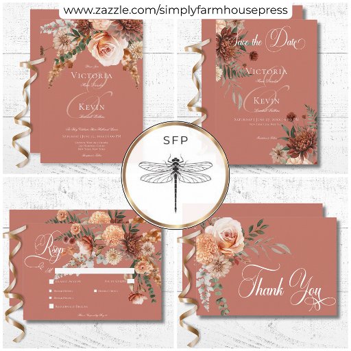 Boho Peach & Rust Blumenrost Hochzeit Einladung
