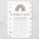 Das ist ein boho Regenbogen-Thema Alphabet Game Baby Shower Game. *Alphabet Game - Die Gäste füllen für jeden Buchstaben des Alphabets ein Wort aus, das mit Babys zu tun hat. Wer die meisten Worte ausfüllt, gewinnt! Das Design besteht aus einem boho Regenbogen mit Herzen. Die Farbe ist rot, rosa, blau, gelb, grün.