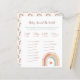 Mit dieser Boho Regenbogen Baby Duschkarte können Sie sich bei Ihrem Fest noch amüsieren! Er ist mit sanften Wasserfarbenregenbögen und warmen Erdtönen gestaltet und eignet sich perfekt für Gender-neutrale Duschen oder Boho-Duschen. Dieses wunderschön koordinierte Party ist eine unvergessliche Ergänzung zu Ihrem Setup und behalte den Lächelnden.