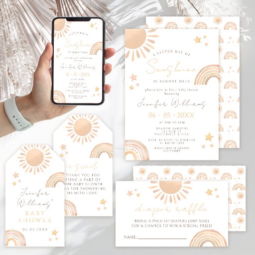 Boho Sun und Rainbow Sunshine Baby Dusche Einladung