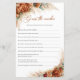 Boho terracotta burgundy Pampas Guess The Number Brautparty Game, Dieses trendige, beliebte Design ist perfekt für alle boho oder tropischen Stil Events. Das Design ist mit Aquarellgras handgemalt Pampas Reds gemischt getrocknete Palmen Blätter gemischte Terrakotta-Blume und gemischte verbrannte orange Rose gemischte Kupfer-Blume Wüsten-Rose und gemischte burgundy Blume Rose gemischt rostigen Erdtönen Blume und berührte eukalyptusgrün und kombiniert moderne kalligraphische Schriftart. Wenn Sie ein Party oder eine Strandfeier planen, ist dieses Design genau das Richtige für Sie. Boho Gefühl und bemerkenswerte Vision. Burnt orange Blume gemischt bordeauxfarbene Rose gemischt Terrakotta Blume und Anordnung grünen Eukalyptus und kombiniert trendige Drehbuch-Schriftart macht dieses Design-Objekte so atemberaubend. Erfolgreich für Hochzeit, Brautparty, Verlobung, Kinderdusche, Jubiläum oder jede Veranstaltung. In dieser Kollektion finden Sie alle Elemente für Ihr Party, wie z.B. Hochzeitseinladungen, Brautduscheinladungen, Babydusche-Einladungen, Sitzkarten, Menüs, Programme, Tags, Etiketten, Schilder, Plakate und vieles mehr. Viel Spaß! Kontaktieren Sie mich für passende Artikel oder für Anpassungen, Blush Rose ©