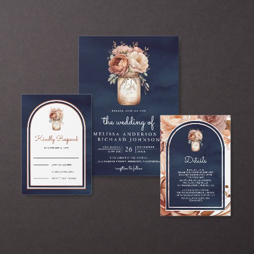 Navy Blue Terracotta Floral Mason Jar WeddingDesignt von Shabbir D