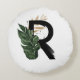 Boho Tropical Greenery Letter R Monogram Rundes Kissen