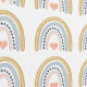 Ein skurriles bohfarbenes Regenbogenmuster mit wenig rosa Herz in der Mitte des Regenbogens. Eine perfekte Wandbehandlung für das Kinderzimmer eines Mädchens. Auch geeignet für das Kinderzimmer eines jungen Mädchens.