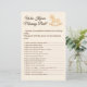 "Testen Sie Ihre Gäste mit dieser lustigen und einladenden Boho Western 'Who Knowy Best' Game Card! Dies ist eine wunderbare Aktivität, die ein unterhaltsames Gespräch fördert und die Mama-zu-be feiert, gerahmt von unseren süßen Rockpferden und Pampas-Gras-Illustrationen. Die Gäste beantworten Fragen zum Leben, den Vorlieben und der Persönlichkeit der werdenden Mutter. Die Karte ist in unserer charakteristischen, geschlechtsneutralen Palette von weichen Tans und Cremes konzipiert und passt somit perfekt zu einer rustikalen oder wilden Westfeier. Spielen: Der Host verteilt die Karten und einen Stift an jeden Gast. Die Gäste beantworten die Fragen zur Mama-to-Be. Der Gastgeber liest die richtigen Antworten (die von der Mommy-to-Be im Voraus bereitgestellt werden), und der Gast mit den korrektesten Antworten gewinnt einen Preis! Das ist eine herzliche und unglaublich witzig Ergänzung zu Ihrer Cowboy- oder Cowgirl-Babydusche!"