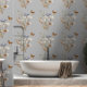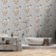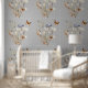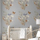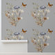 Dress up your room with this beautiful, elegante, dennoch moderne boho Schmetterling Wildblume Blumentapete. Set auf grauem Hintergrund mit gelben, cremefarbenen und blauen Blumen und einem Monarchschmetterling, der wiederholt wird.