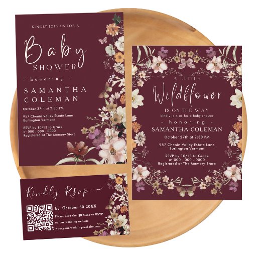 Rustic Boho Wildflower Burgundy Baby ShowerDesignt von Katrina W.