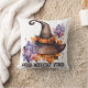 A whimsical boho-style illustration featuring a witch hat adorned with autumn leaves, purple crystals, and soft flowers. The phrase “Boho Witchy Vibes” captures the magical and free-spirited essence of the design, blending mystical charm with bohemian flair.