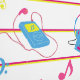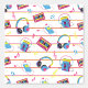 Feines, buntes, leuchtendes Neon, buntes, geometrisches Stripmuster im Stil der 90er Jahre mit Musiknoten, Kassettenbändern, Walman, Kopfhörern. Retro und dennoch modern ist dieses fette Muster perfekt für akzentuierte Wände. Wallpaper Peel and stick lasse Ihnen, Ihre kleine Wohngestaltung zu erweitern und Ihre Miete mit Ihrer einzigartigen Design-Ästhetik zu personalisieren. Keine langweiligen weißen Kisten mehr!