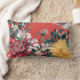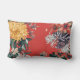 Blumendesign mit fett gemusterten Chrysanthemen auf rotem Hintergrund. Dieses wunderschöne rote Kissen aus Lendenwirbel verleiht Ihrer Einrichtung eine Touch Eleganz.
