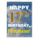 Dieses einfache Geburtstagskarten-Design mit Geburtstagskarte zeigt einen herzlichen Geburtstagswunsch wie "GLÜCKLICH 17. BIRTHTAG, Vorname!" auf der Vorderseite in fett gedrucktem Text auf einem Hintergrund, der einen blauen Himmel mit weißen und grauen Wolken darstellt. Die Geburtstagsnummer hat ein goldfarbenes Imitat-/Imitationsbild. Der Name auf der Vorderseite kann personalisiert sein. Im Inneren befindet sich eine individuell anpassbare Geburtstagsnachricht. Eine solche Grußkarte könnte ein lustiger Weg sein, jemandem, der seinen siebzehnten Geburtstag feiert, Geburtstagswünsche zu überbringen. [~Z0000284]
