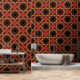 Diese lebendige Schale und das Tapete mit Stick zeigen ein gewagtes Blumenmuster. Stilisierte rote Blume mit einem Pop aus feinen Zentraldetails vor einem dunklen Hintergrund, umgeben von blattähnlichen gelben Formen. Das symmetrische Design verleiht dem Hotel eine visuelle Dynamik, was die Innendekoration zu einer wahren Augenweide macht. Die glatte Textur und die Klebebindung machen es einfach, nach Wunsch anzuwenden und zu wechseln.