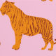 Kühne, lustige, moderne, große Tigermustertapete. Orangefarbene Tiger mit roten Streifen auf rosa Untergrund. Wandbilder sind ideal für Wohnungen, Vermietungen, kurze Termingeschütze, Akzente und Brennpunkte. Mit der schalen und klebhaften Tapete können Sie Ihre kleine Wohnraumdekoration aufwerten und Ihre Wohnung mit Ihrer einzigartigen Design-Ästhetik auf familienfreundliche Weise personalisieren. Keine langweiligen weißen Kisten mehr! Verzieren Sie Ihren Raum einfach. ** Texturierte Tapeten funktionieren am besten mit texturierten Wänden. **