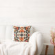 Dieses auffällige Kissen zeigt ein gewagtes Stammesdesign mit scharfen geometrischen Formen in Rot, Orange, Bräune und Schwarz. Die Symmetrie und der Farbkontrast bringen visuelles Interesse und kulturellen Flair in jedes Zimmer. Ideal für rustikale, boho oder moderne ethnische Dekoration.