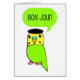 Ein Produkt mit einem Zeichnen eines grünen Parakeet, der ein stilvolles schwarzes Barett und ein Sprichwort trägt: "Bon Jour!" (das "hallo" auf französisch bedeutet)