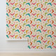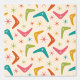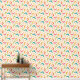 Es handelt sich um klassische moderne Bumerangmuster mit atomaren Sternexplosionen in Orange, Rosa, Rot, Grün und aquamarin auf hellcremefarbenem Hintergrund. Es ist großartig aussehende Tapete für jeden, der die Atomära entwirft.