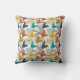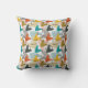 Dieses Kissen hat ein modernes Design von Boomerang Formen und Korkformen in Retrofarben.