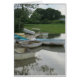 Sieben kleine Boote warfen auf den flachen Rand einer Bucht.