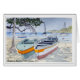 Wasserfarbe von ein paar Booten ausgearbeitet auf dem Sand bei Bequia in den Grenadinen, Antillen.