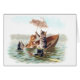 Vintage Grafik der kleinen Kätzchen, die ihr Boot heraus in den See genommen und einen Bootfahrtunfall erlitten haben. Eine Katze sitzt noch im Boot, das einen frilly Regenschirm während der andere Aufstieg drei zurück herein hält.