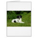 Ein junger, gesunder, schöner Schwarz-Weiß Border Collie Hund stehend auf dem Gras sieht sehr glücklich aus. Der schottische Schafhund zählt zu den intelligentesten Rassen.