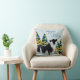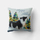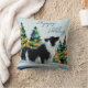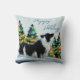 Grenz Collie im Winter Schnee Weihnachtsbaum Kissen. Ruhige Winterschneelandschaft mit einer schönen schwarz-weißen Grenzkolonie und farbenfrohen Weihnachtsbäumen. Glückliche Ferien in einem trendigen Skript. Ferienkissen für den Besitzer einer Grenzkolonie. Sie können den Text ändern oder löschen.
