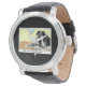 Uhr, Vintage Männeruhr mit schwarzem Lederarmband