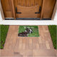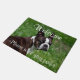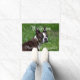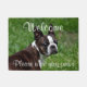Brindle und weißer Boston-Terrier mit "Willkommen - Mitteilung bitte wischen Sie Ihrer Tatzen" ab. Fühlen Sie bitte sich frei, Text zu addieren, zu ändern oder zu entfernen, wenn Sie mögen.