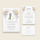 Delicate botanical sketch of wildflowers adorns this wedding dinner menu, featuring a soft watercolor palette. The artistic illustration brings a natural and romantic feel to your table setting. This menu is ideal for garden weddings, rustic celebrations, or any event seeking a touch of organic beauty. Showcase your carefully curated meal with this charming design.