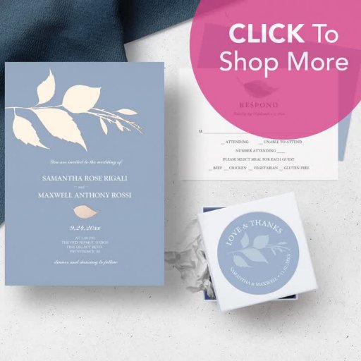 Designed to coordinate with my Luxury Wedding Suite, this modern design features a sprig of botanical leaves in real gold foil on a crisp white background. This elegant card opens to a dusty blue color with space to add your personal greeting. Visit www.zazzle.com/dotellabelle to shop the entire wedding stationery theme.