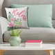 Tropisches Kissen mit Blumenwasser. Ein tropisches Design, das die ruhige Schönheit der Natur mit einem spielerischen Rand verbindet. Eine Mischung aus beruhigenden tropischen Blätter, wie Bananenstauden, Palmen, Monstera-Blätter, rosa Princessa-Pflanze, sanftes lila-rosa Orchideengebirge und Protea-Blüte, die mit verschiedenen anderen Blättern verwoben sind. Das Hinzufügen eines lustigen Elements, eines grauen "chaotischen Punktes" oder eines "dalmatinischen Punktes" Hintergrundes verleiht dem Design eine spielerische Touch. Dieser bezaubernde Print, der durch einen modernen handgeschriebenen Schriftart ergänzt wird, strahlt Charme und Eleganz aus. Dieses vielseitige Design bringt ein Gefühl von tropischem Paradies in jede Umgebung oder jeden besondere Anlass. Karo auch aus allen Koordinatenteilen!