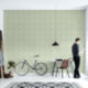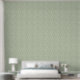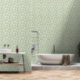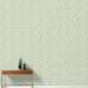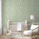 Die Tapete ist mit botanischen Blätter in Aquarelltönen in Grün auf Beige gestaltet und wirkt angenehm beruhigend.