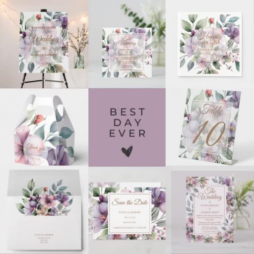 Mit unserer minimalistischen und trendigen Hochzeitseinladung, die eine hübsche Blume in hellen lila und grünen Blätter und mehr bietet, mit einem eleganten Hintergrund, schaffen Sie einen gepflegten und stilvollen Look für Ihren besonderen Tag.