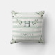 Dieses trendy Kissen kennzeichnet grünes Watercolor-Blätter auf Streifen des weisen Grüns, mit Ihrem Namen und Initiale. Gestreifter Hintergrund über Indie Anmut-Entwurf.