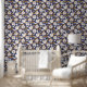 Botanisches blaues Beige-Lily-Floral-Muster Tapete
