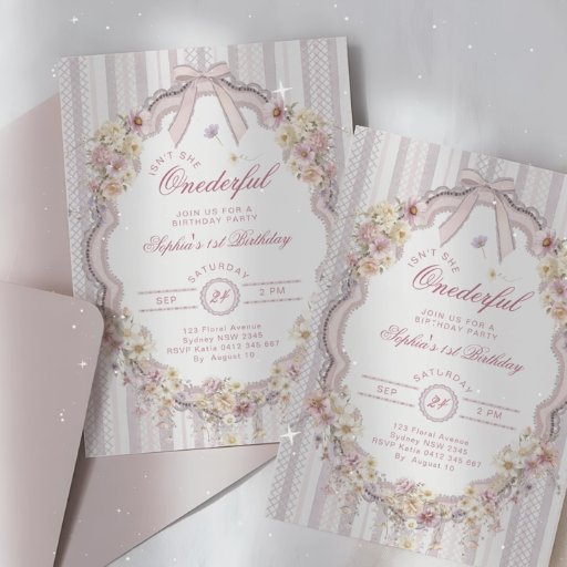 Elegant Floral Vintage Bow 1st BirthdayDesignt von Katsiaryna Lukyanava