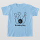 Dieses scherzt Ausrüstungsbeschreibungen ein Bowlingsball, der gegen Buttone schlägt. Personifizieren Sie dieses Shirt mit einer Alters- und Namens- oder kurzenphrase. Diese sind der Spaß, zum an einem Party zu tragen, um den Geburtstagsjungen zu ehren oder Mädchen. Dieser bestimmte Entwurf funktioniert gut mit hellfarbigen Shirts. Ich habe auch diesen Entwurf für Dunkelheit farbige Shirts.