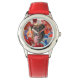 Kinderuhr aus Edelstahl mit rotem Lederarmband