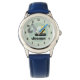 Kinderuhr aus Edelstahl mit blauem Lederarmband