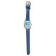 Kinderuhr aus Edelstahl mit blauem Lederarmband