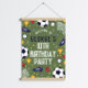 This sporty wrapping paper features a fun green background with a pattern of soccer balls, trophies, and stars. Perfect for birthday gifts, party favors, or any celebration for a football-loving kid!