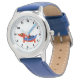 Kinderuhr aus Edelstahl mit blauem Lederarmband