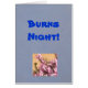 Fotografie von "rosa Heide" auf einem blauen Hintergrund mit blauem Text: "Brand-Nacht!"