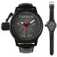 Uhr, Vintage Männeruhr mit schwarzem Lederarmband