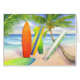 Bunte Surfbretter, die sitzen auf dem Ufer und unter den Palmen, ihr "großes Kahunas geduldig erwartend!" :: Ursprüngliches Aquarell durch Barbara Bayer