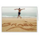 COPYRIGHT Stephanie Rabemiafara / DanitaDelimont.com | AF36 SRA0000.jpg | BRASILIEN. Barechest Mann mit einem Anzug springen auf den Sand über den Namen Brasilien geschrieben im Sand, springen in Richtung Meer