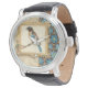 Uhr, Vintage Männeruhr mit schwarzem Lederarmband