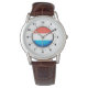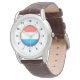 Braune Leather Watch - Luxemburger Flagge Armbanduhr