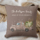 Der dunkelbraune Hintergrund ist mit einem braunen LKW mit weißen Blume geschmückt. Personalisieren und fügen Sie Ihren Familiennamen und den Namen Ihrer Zuhause hinzu.