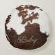 Brauner und weißer Cowhid Rundes Kissen